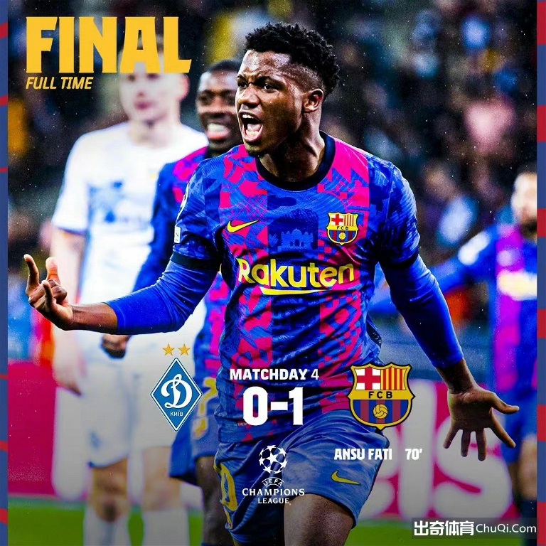 北京时间11月3日4:00,欧冠小组赛第4轮,巴塞罗那客场挑战基辅迪纳摩。上半场,德佩抽射被封堵,布斯克茨抽射打飞,朗格莱头球中柱。下半场,法蒂抽射破门,最终,巴萨1-0基辅迪纳摩。