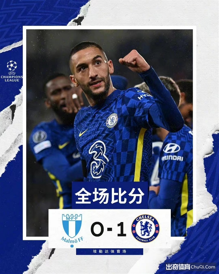 北京时间11月3日01:45,欧冠小组赛H组第4轮展开争夺,切尔西客场挑战马尔默。上半场,阿斯皮利奎塔与齐耶赫的威胁攻门均被达林化解,随后哈弗茨失良机。下半场,奥多伊助攻齐耶赫一击制胜,哈弗茨再失良机;普利希奇终场前超级单刀机会过掉门将施射打偏。最终,切尔西客场1-0小胜马尔默。