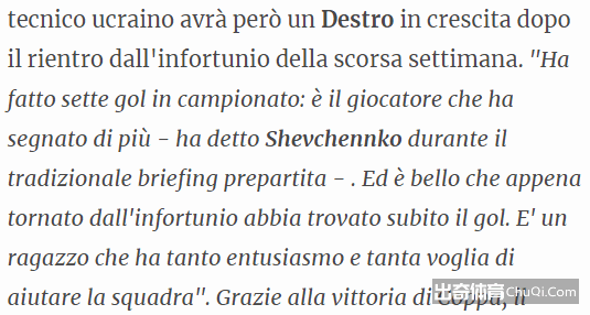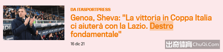 米兰体育报: 热那亚主帅舍甫琴科在今晚对阵拉齐奥的比赛赛前发布会上谈到:“意大利杯上战胜萨勒尼塔纳的给了我们很大的信心,因为重回胜利总是美好的。而且,我们的球队还没有失球。对阵拉齐奥将会一场非常艰难的比赛,但我们希望上一场的胜利能提高我们的士气。我们必须打一场具有侵略性的比赛,团结一致并保持队伍阵型紧凑。