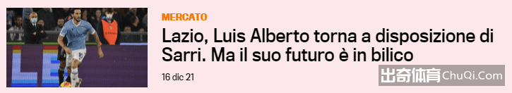 米兰体育报指出,路易斯·阿尔贝托(2球4助攻)将在面对热那亚的比赛中回归到萨里的主力阵容当中,但是这位西班牙中场在球队的未来还是不确定。在此前的三场比赛他由于肌肉问题和一些战术安排原因被排除在球队的首发甚至大名单以外。