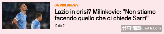 据米兰体育报消息,本赛季拉齐奥在主教练萨里的带领下所取得的战绩不算太好,目前只排在意甲的第九名。但是队中最具代表性的球员之一米林科维奇捍卫了这位来自托斯卡纳的教练。在此前举行的一个圣诞派对,这位塞尔维亚国脚对在场的记者说:“请给我们时间,我们会越来越理解到教练的安排。我们还没有做到他要求我们做的事情。我们的目标是不断提高球队的竞技水平,我相信很快就会有好的结果。”
