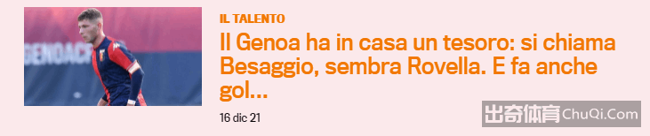 据米兰体育报:消息,热那亚预备队的队长贝索是目前预备队联赛的最佳射手,这位10号球员总共奉献了9个进球。 相信对热那亚一线队对他的征召很快就会到来。