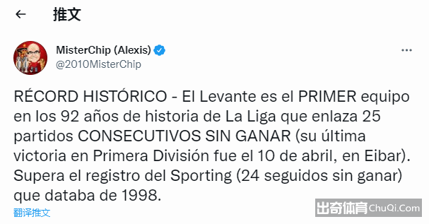 上一轮客场3-4不敌西班牙人,莱万特已经跨赛季连续25场西甲不胜,打破了希洪竞技在1998年创造的西甲历史最长不胜记录。本赛季17轮西甲联赛过去,莱万特以8平9负的成绩排名联赛垫底,至今一胜难求。