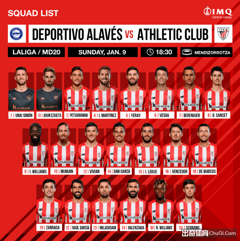 球队官方公布了本场比赛的大名单,伊尼亚基·威廉姆斯(20场5球2助)、桑塞特(17场4球3助)领衔,乌奈·西蒙(16场)、文森多尔(19场)、德马科斯(10场1球2助)回归,后卫努涅斯和卡帕因伤缺阵。