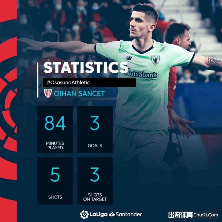 在西甲第19轮毕尔巴鄂客场挑战奥萨苏纳的比赛中,中场球员桑切特在上演帽子戏法,帮助球队3-1战胜对手。他以21岁零253天的年龄成为21世纪以来代表毕尔巴鄂竞技上演帽子戏法最年轻球员,同时也是西甲联赛中第一个完成帽子戏法的“00后”球员。本赛季至今的西甲联赛,桑切特代表毕尔巴鄂竞技出战16场,贡献4球3助攻。