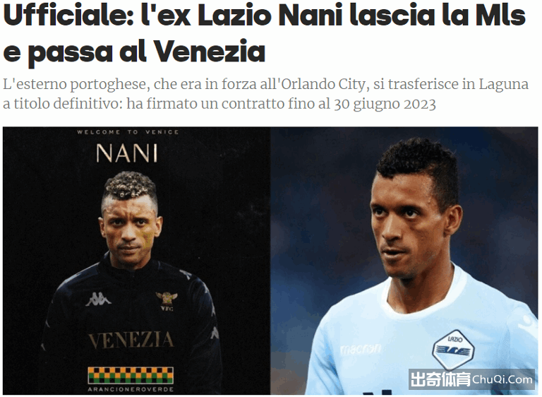 据官方报道,葡萄牙老将纳尼正式加盟威尼斯,双方签约到2023年,纳尼之前在美职联奥兰多城效力,联赛29次出场取得10球7助,能力仍然保持在较高水平。