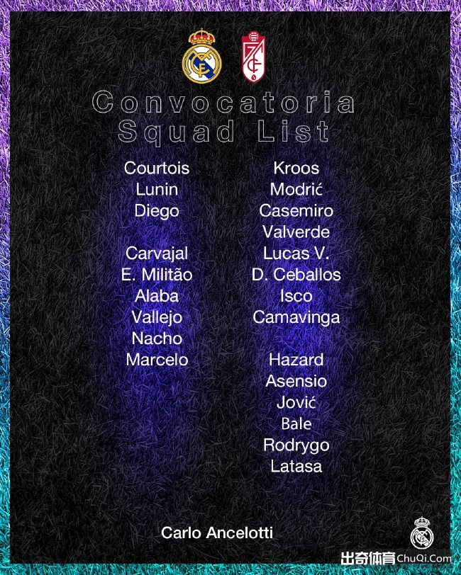 赛前皇马官推公布了本场比赛的大名单,其中前锋本泽马、后卫门迪、边锋维尼修斯(停赛)、前锋马里亚诺4人缺阵,阿扎尔、贝尔在列。