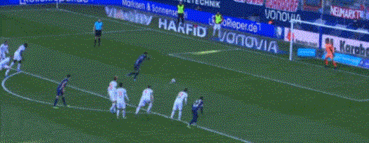 第9分钟,穆勒挑传左侧,科曼头球摆渡,莱万停球顺势扫射破门,0-1,拜仁客场比分领先。