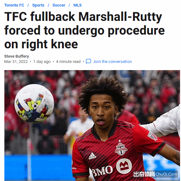 多伦多FC边锋马绍尔-鲁蒂3月31日被迫接受右膝手术,将因伤缺席一段时间。马绍尔-鲁蒂年仅17岁,在多伦多FC阵中担任主力边锋,本赛季前4场全部出战,去年12月还曾受邀参加利物浦的试训。
