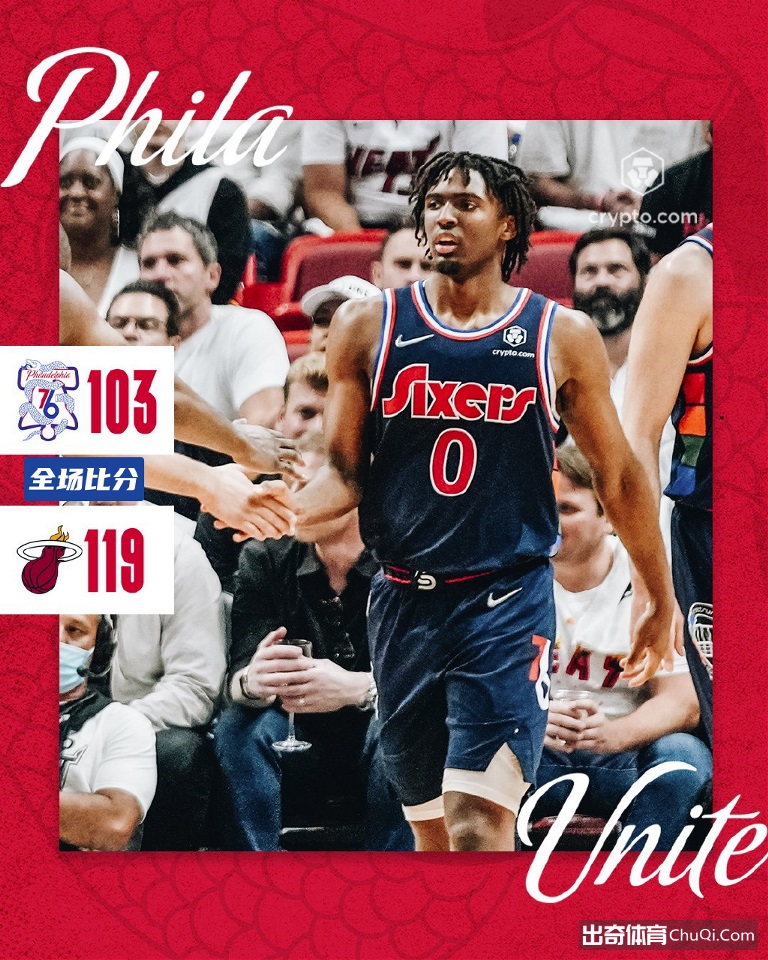末节决战,热火中段连得10分将分差扩大至18分,76人则以13-5回应在末段将分差迫近至10分。时间所剩不多,76人未能继续缩小分差,最终热火以119-103轻取76人连下两城。