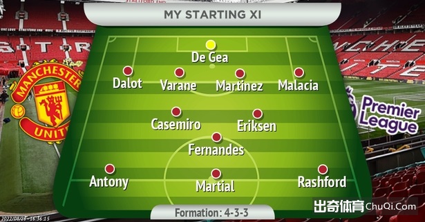 《曼彻斯特晚报》撰文分析了曼联的最佳首发阵容,安东尼搭档拉什福德、马夏尔组成锋线。