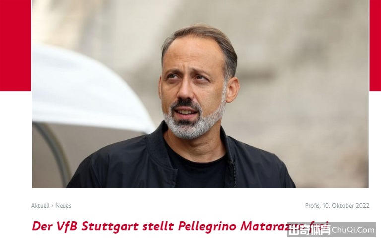 5平4负排名德甲倒数第2!官方:斯图加特主帅马塔拉佐下课
