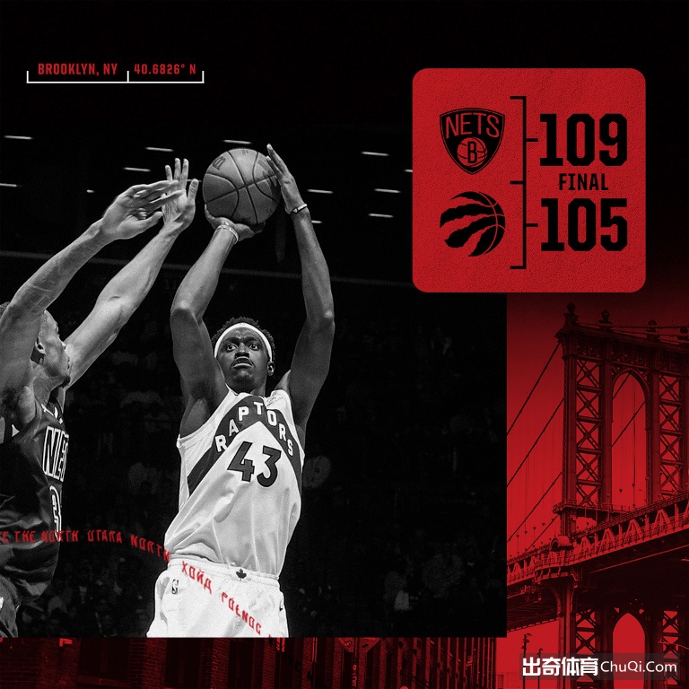 第四节还有5分35秒时篮网队以100-88领先。猛龙队迅速追回9分迫近,篮网队暂停后连续投篮打铁,阿奴诺比三分命中,猛龙队追成100平。102平后杜兰特三分命中,范弗利特跳投命中,奥尼尔左翼命中三分,第四节还有15.3秒时篮网队以108-104领先。西亚卡姆两罚一中,杜兰特罚球还击,篮网队以109-105获胜。
