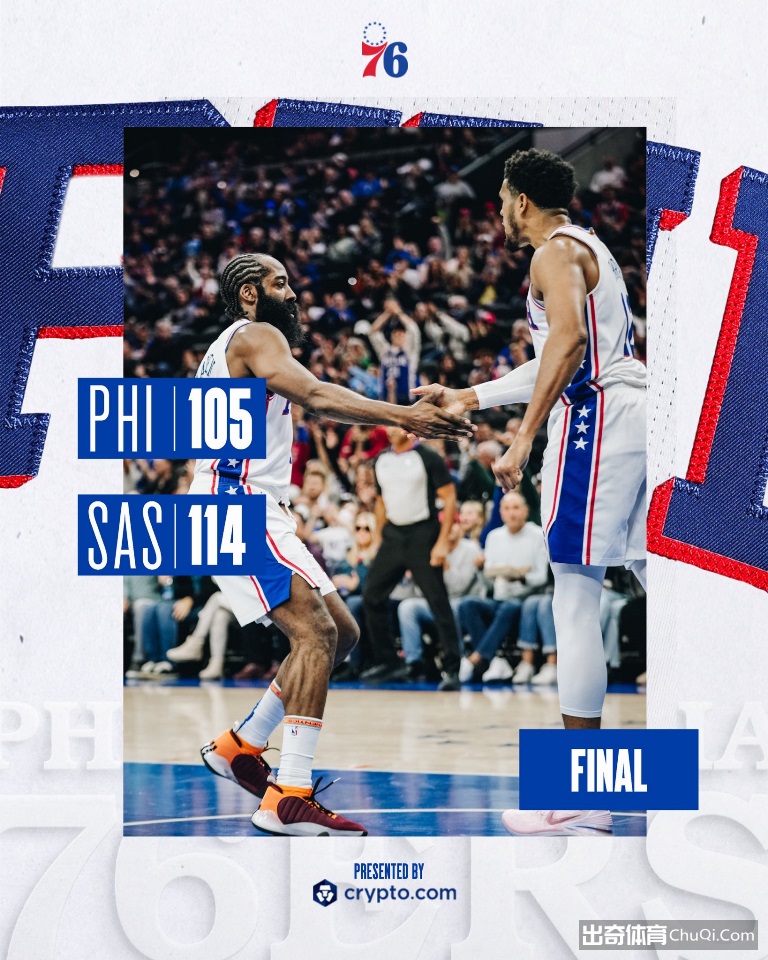 NBA新赛季常规赛继续进行,费城76人队(0胜3负)以3连败开季。虽然恩比德得到40分和13个篮板,但瓦塞尔得到22分,约翰逊得到21分和8个篮板,他们率队末节重夺领先并保持到最后,圣安东尼奥马刺队(2胜1负)在客场以114-105战胜76人队。
