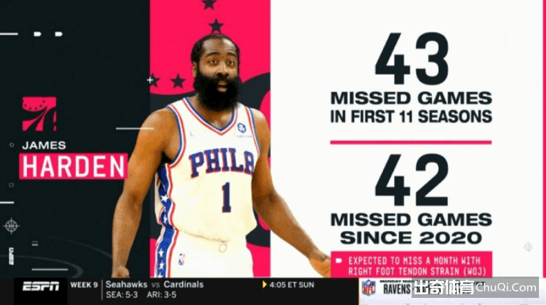 据美媒统计,生涯前11个赛季,哈登仅缺席了43场常规赛。但自20-21赛季起,他总计已缺战了42场常规赛,这还不包含未来一个月他将缺席的比赛。