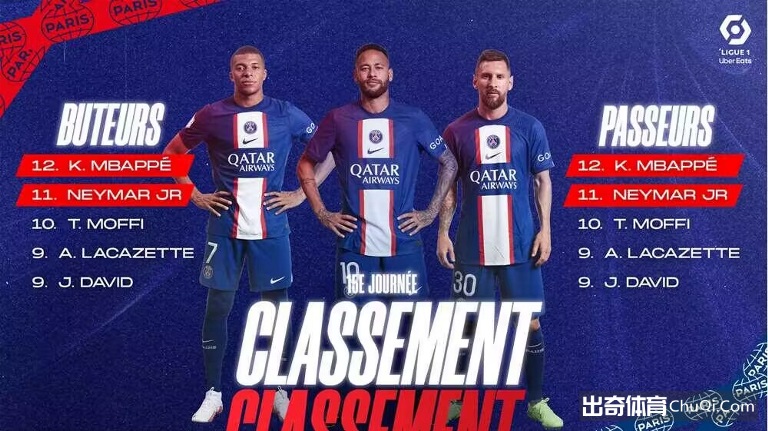 在助攻榜上,梅西和内马尔分别是10次助攻和9次助攻分列法甲助攻榜的前两位。梅西的10次助攻中,有6次是帮助姆巴佩破门得分,是五大联赛单项连线之最。