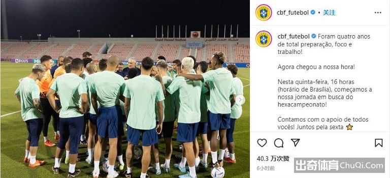 巴西即将开启本届世界杯之旅,巴西国家队官方社交媒体发文希望能够得到球迷的支持。