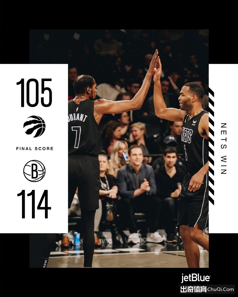 下半场,双方命中率均有所下降,篮网保持着20分左右的领先,此后猛龙展开反击,不断蚕食分差一度将分差迫近到个位数,但无奈之前挖坑太大,最终,篮网击败猛龙,取得4连胜。