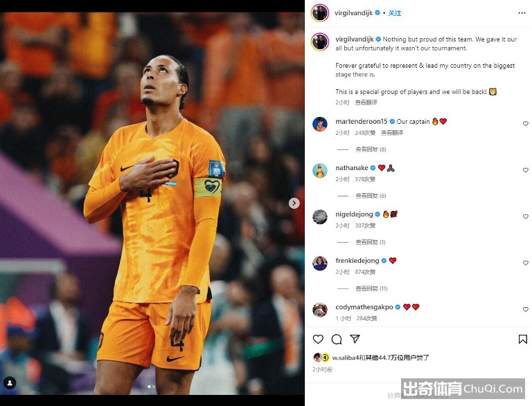 四分之一决赛,荷兰点球大战不敌阿根廷,无缘半决赛。范迪克不久前更新社交媒体动态,表示会卷土重来。