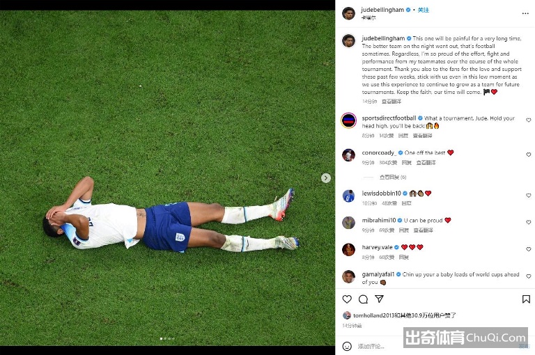 贝林厄姆写道:“这场失利将会痛很久,表现更好的一方出局了,有时候这就是足球。”