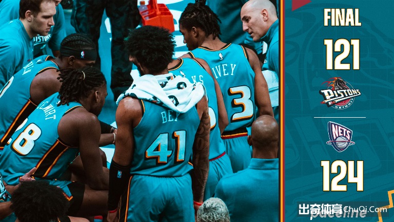 2022-23赛季NBA常规赛继续进行,布鲁克林篮网队(19胜12负)延续连胜。杜兰特得到43分和6个篮板,欧文得到38分和6个篮板,他们率队下半场上演翻盘好戏,篮网队在客场以124-121险胜底特律活塞队(8胜24负)。