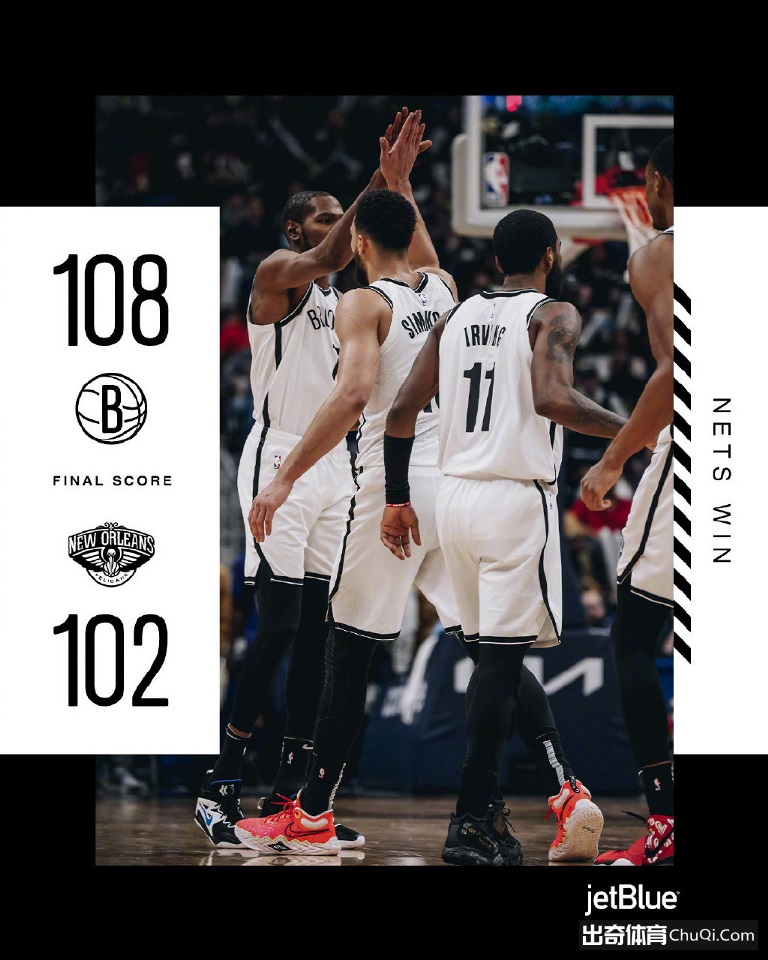 休息归来篮网总算没有犯上半场开局慢热的错误,这一节杜兰特开局连砍8分带队迅速追上比分,末段又是一波8-0完成比分反超,末节双方一路僵持悬念留到最后,最后决胜时刻整场手感都不算好的欧文一内一外拿下致命5分锁定胜局。最终,篮网客胜鹈鹕避免连败。