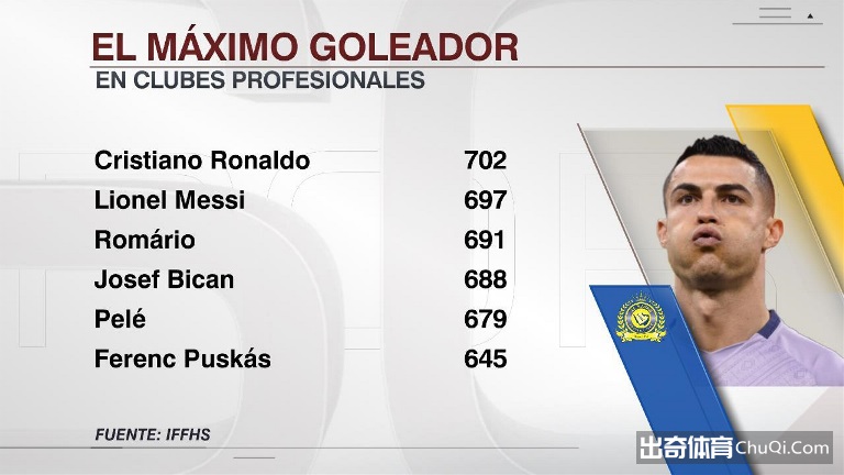 沙特超第15轮,利雅得胜利2-2哈萨征服,本场比赛C罗点射破门,收获俱乐部第702球,位居俱乐部进球排行首位。