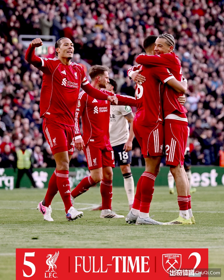 北京时间2月28日23:00,2025-26赛季英超联赛第28轮,利物浦坐镇安菲尔德球场迎战西汉姆联。上半场赫拉芬贝赫助攻埃基蒂克破门,范戴克头球再下一城,随后埃基蒂克助攻麦卡利斯特继续扩大比分,利物浦暂3-0西汉姆联;下半场绍切克扳回一球,埃基蒂克助攻加克波破门,利物浦再次将比分扩大,随后卡斯特拉诺斯头球进球,弗林蓬造乌龙锁定胜局,最终利物浦5-2西汉姆联,各项赛事4连胜,先赛一场暂时升至积分榜第5。