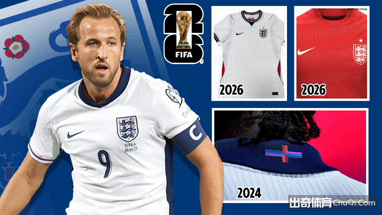 FootyHeadlines近日曝光了英格兰队2026年世界杯主场球衣设计。