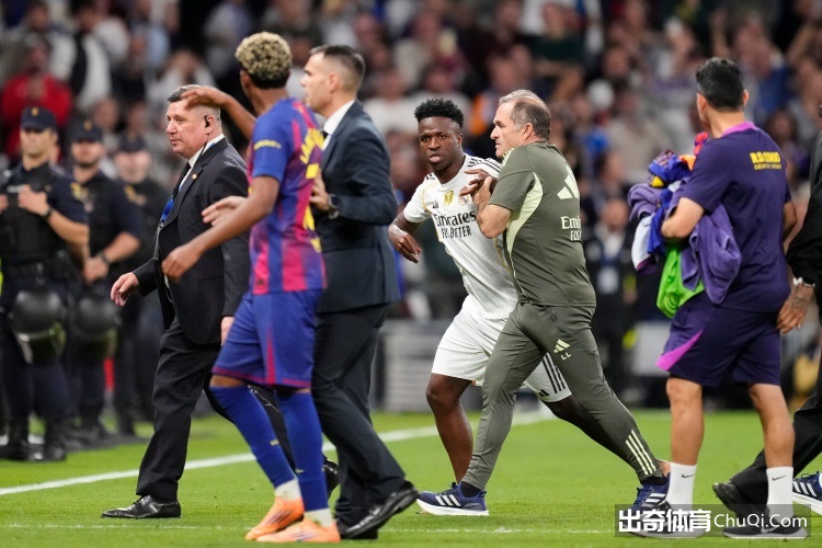 西班牙国家德比皇马2-1击败巴萨,TA发文梳理本场比赛最后阶段的一系列乱象,由于球员情绪失控,警察出面干预才将球员分开。比赛第99分钟,佩德里对琼阿梅尼犯规,领到第二张黄牌被罚出场